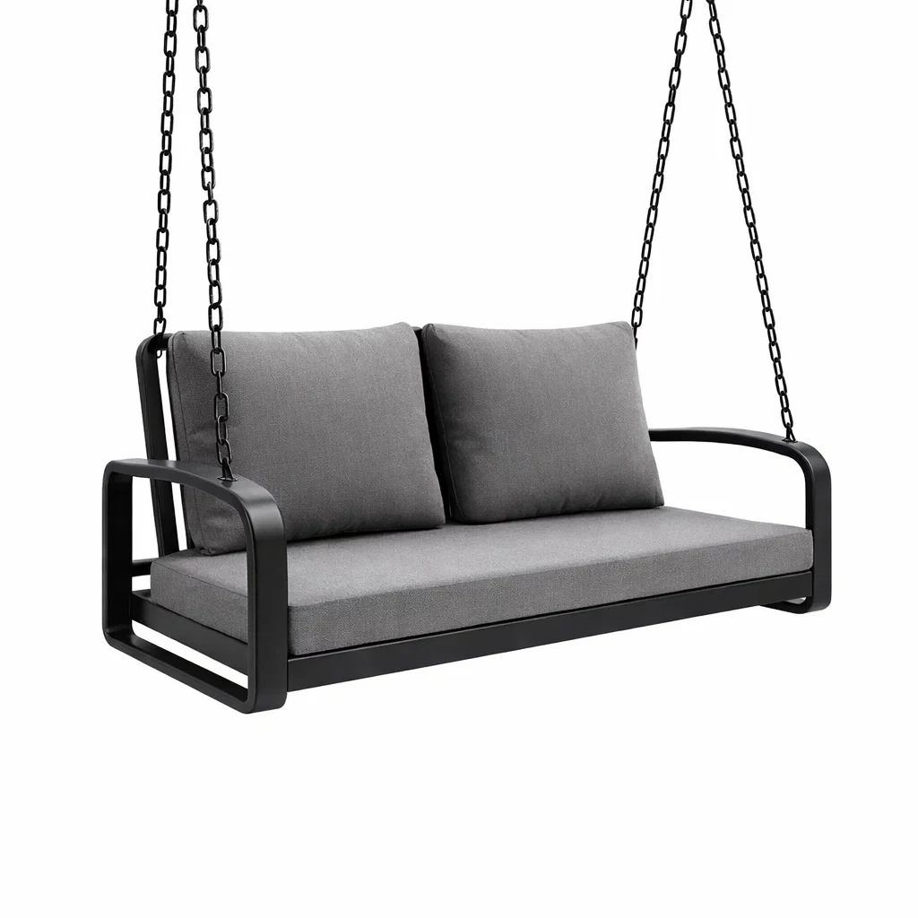 Altalena da veranda sospesa in alluminio con cuscini in tessuto grigio