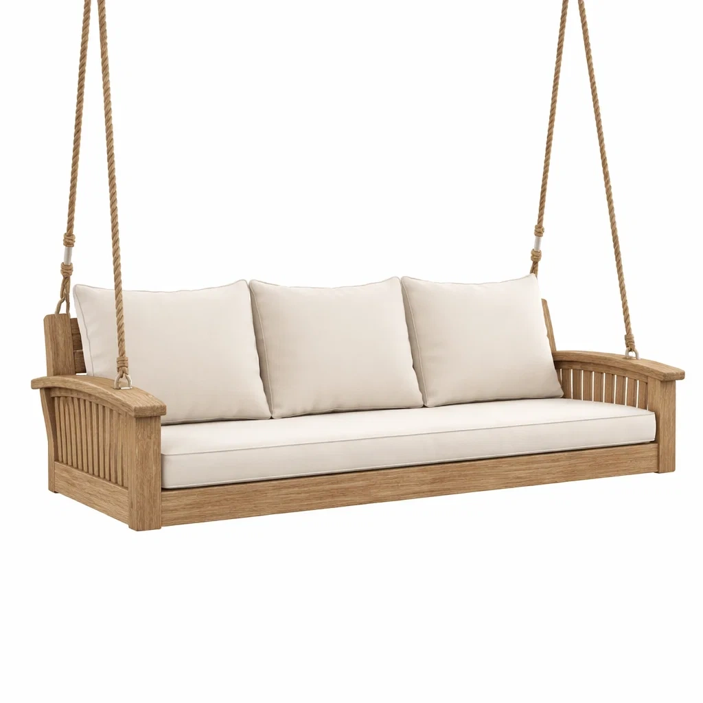 Altalena da veranda in legno di quercia con cuscini in tessuto
